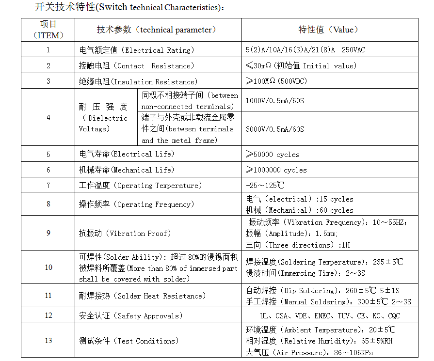 | 2 | Kontaktu Erresistentzia | ≤30mΩ Hasierako balioa | |