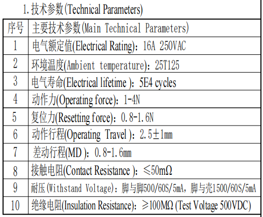 | 2 | Harremanetarako erresistentzia | ≤50mω hasierako balioa | |