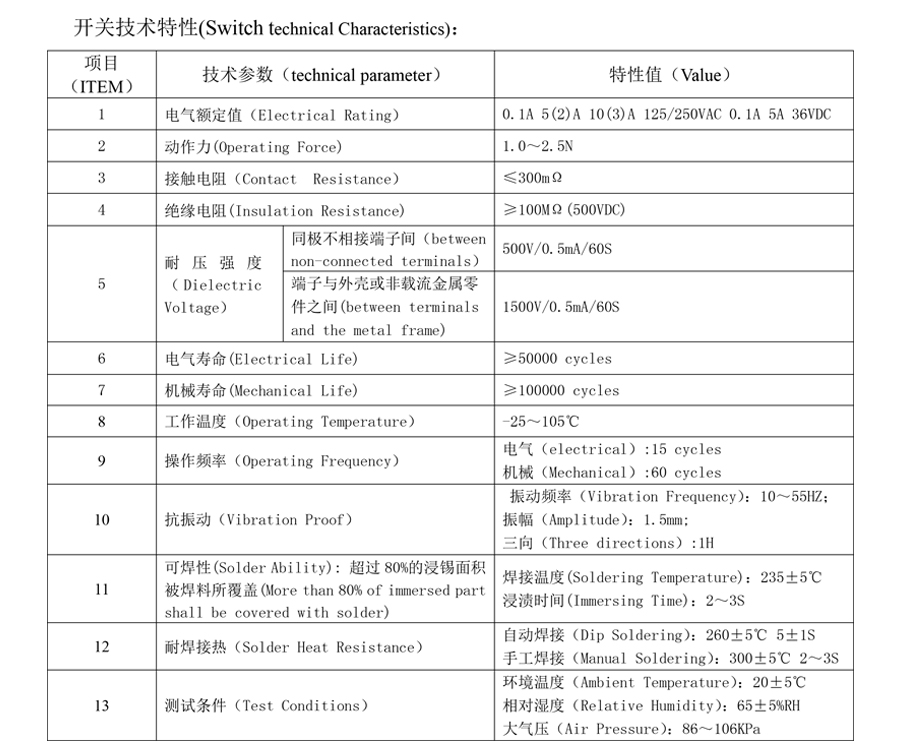 | 3 | Kontaktu Erresistentzia | ≤300mΩ | |