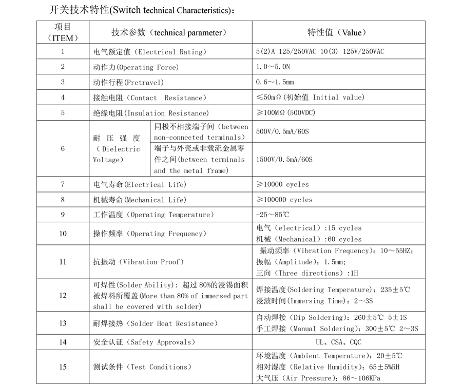 | 4 | Kontaktu Erresistentzia | ≤50mΩ Hasierako balioa | |