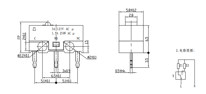 | 1 | Balorazio elektrikoa: 1A/3A 250VAC |